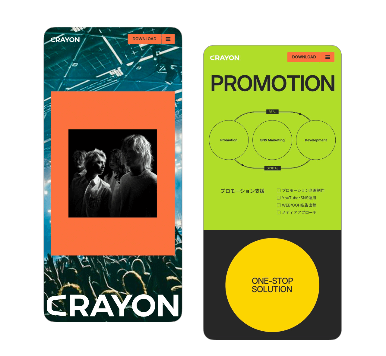 カラフルなカードレイアウトや全体の色設計を組み合わせることで、CRAYONらしい遊び心とこれからの広がりを表現しました。