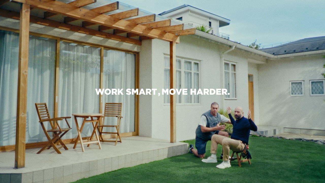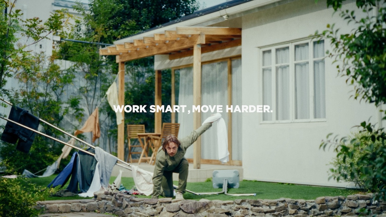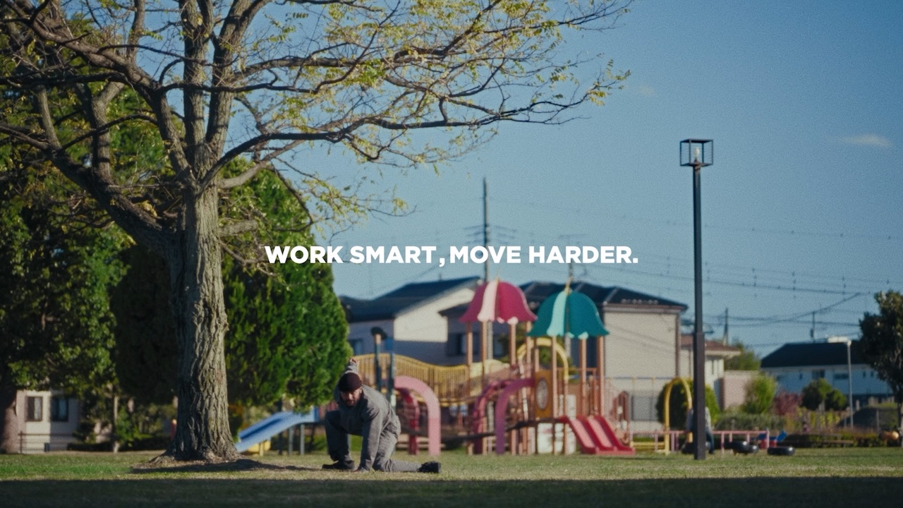 ダイナミックな身体表現を通して、ワークウェアに求められる機能性・可動性・タフさを直感的に伝えるとともに、デザイン性も印象的に訴求する映像に仕上げました。