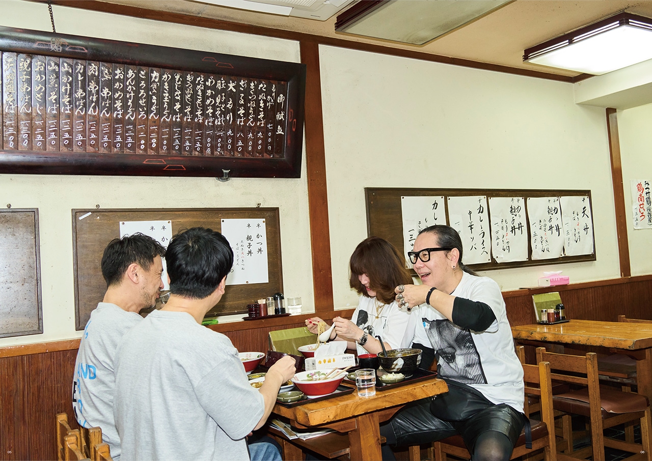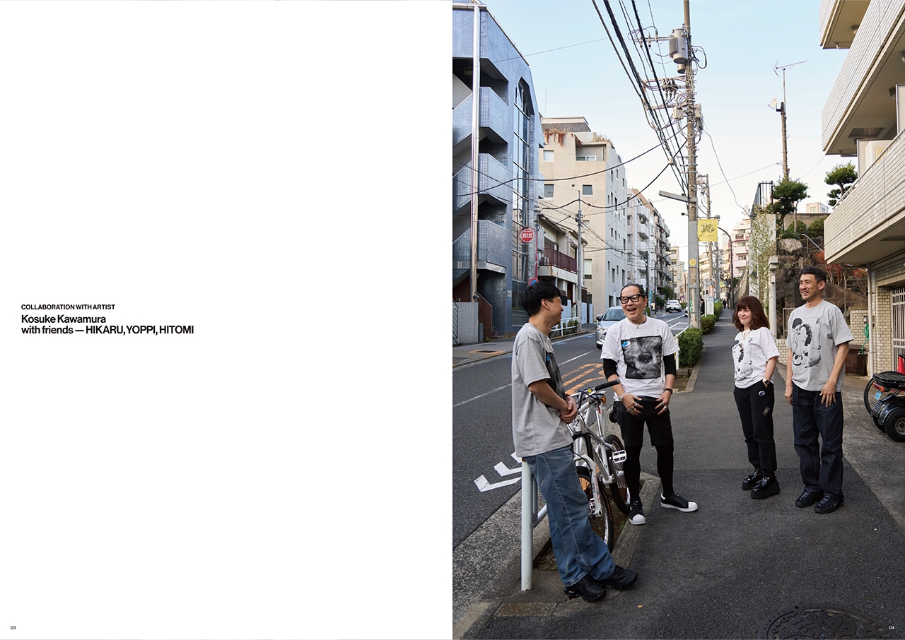 スペシャルコンテンツとして、コラージュアーティスト/グラフィックデザイナーの河村康輔とのコラボレーションを実現。“仲間と出かける”をテーマに制作されたグラフィックTシャツは、千駄ヶ谷の老舗蕎麦屋「ほそ島や」を舞台に、河村康輔と親交のある仲間たちとともにビジュアルを展開しました。